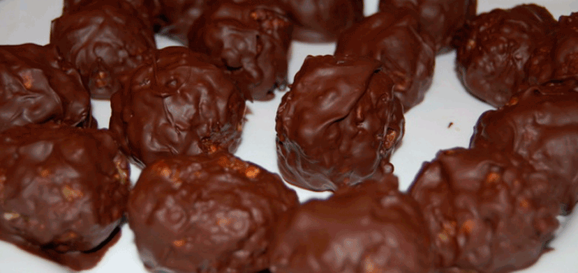 Шоколад растопить на водяной бане. Готовые шарики обмакивать в шоколад. Затем отправить домашние конфеты «Метеорит» в холодильник для застывания ровно на сутки.