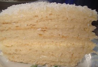 3. Затем белый бисквит, опять крем и потом желе.