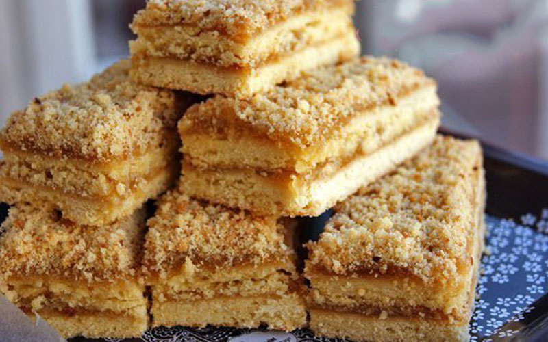 Намазать верх оставшимся повидлом. Посыпать крошкой.