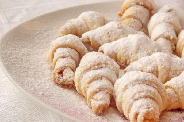 Укладываем рогалики на противень на расстоянии друг от друга и выпекаем при 180 С до золотистого цвета, в течение 15 минут.