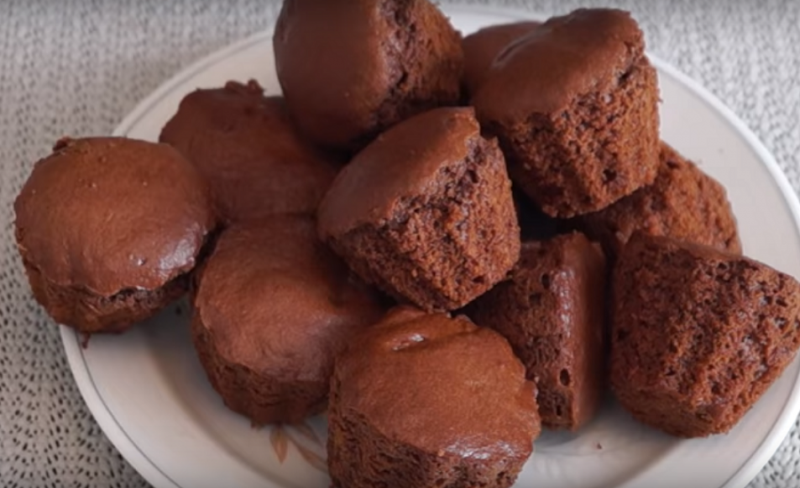 - Через отведенное время достаем готовые кексы, вынимаем их из формы на тарелку и подаем к столу.