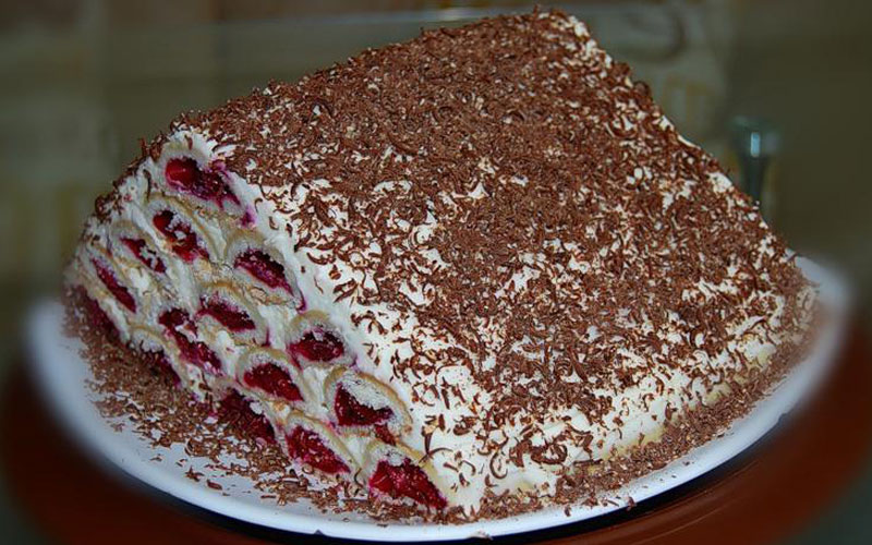 Смазать остатками крема и посыпать тертым шоколадом.