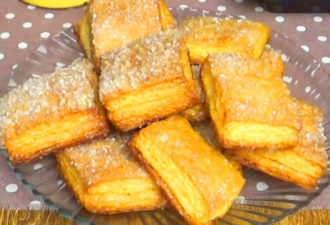 Выпекаем 8 тоненьких коржей (1 измельчаем — для посыпки).