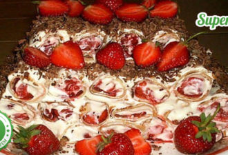 Готовый тортик ставим в холодильник на 1 час, а потом подаем к столу.