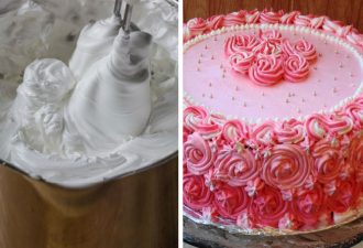 Поставьте пирожное в духовку на 12 минут при 180 градусах. А пока приготовим крем. Для этого смешайте сливки и сахарную пудру. Получится крепкая пена.