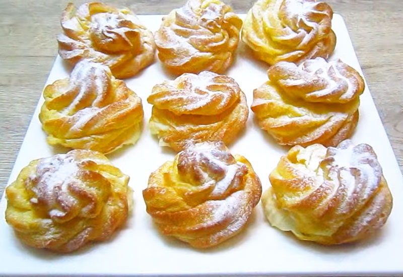 Тесто заварное, мягкое и воздушное. Крем сметанный, заварной с изумительным вкусом.