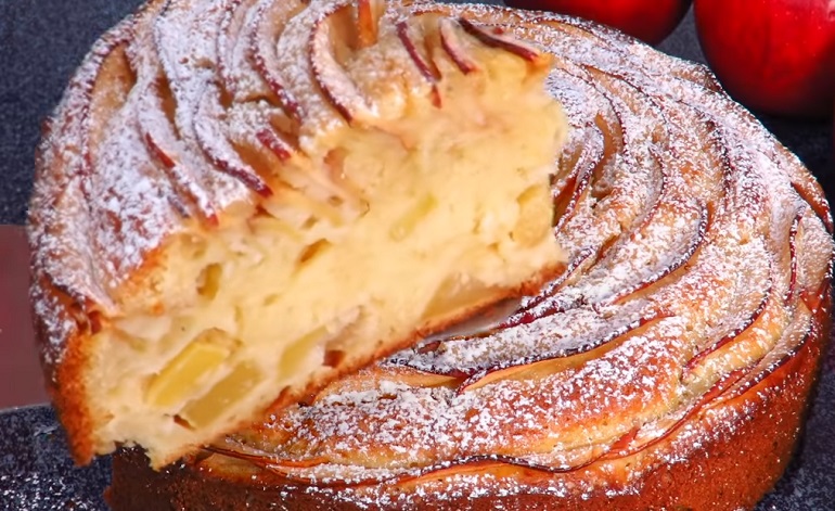 Верх пирога слегка присыпаем сахарной пудрой. Яблочный пирог «Роза» получается в меру сладкий, с пикантной яблочной кислинкой и сладкой корочкой! Нежные кусочки пирога тают во рту мгновенно! От такой красоты на столе дух захватывает, а уж про вкус и говорить нечего. Изумительная выпечка исчезает с блюда в мгновение ока. Еще больше рецептов десертов к чаю смотрите на нашем сайте: нам есть, чем вас удивить.