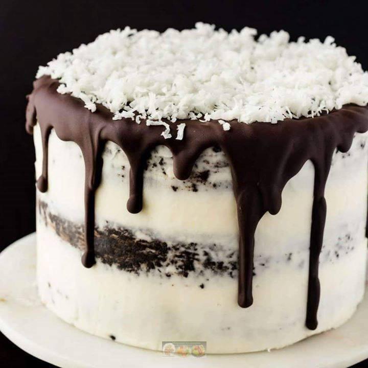 - Сверху и по бокам смазываем его кремом, а потом убираем в холодильник на 6 часов. Готовый торт украшаем шоколадом и кокосовой стружкой. И подаем к столу.